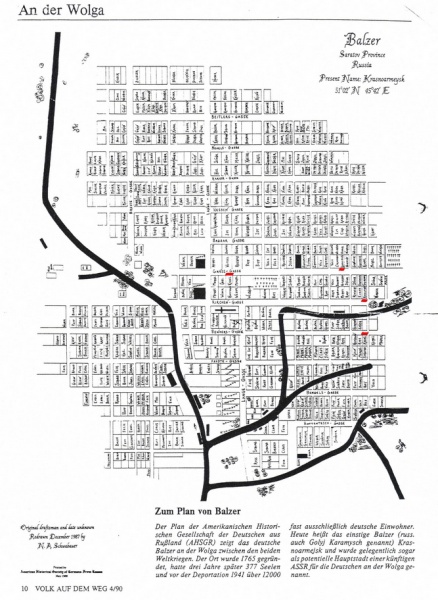 План колонии Бальцер. Составил N.A. Schwabauer 1987 год. Публикуется в журнале Volk auf dem Weg 4/90. Ссылки * 1 *.