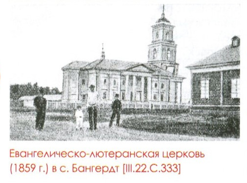 - Лютеранская кирха и часть школы в немецкой колонии Бангердт / Зауморье.