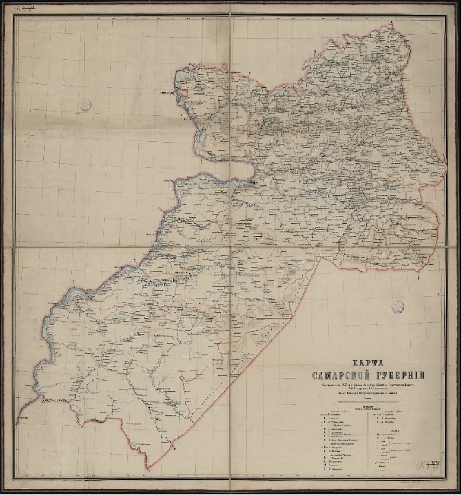 Карта Самарской губернии 1888. Карта Самарской губернии / Сост. в 1887 г. членами Самарского губ. стат. комитета П.А. Рихтером и И.Ф. Станевичем; Литограф И.Махотин. — Самара: Самарский губ. стат. ком-т Картогр. завед. А.Ильина, 1888. — 1 к.: 3 цв., накл. на полотно; 76х71 (82х77) см. Ссылки: * 1 * 2 *.